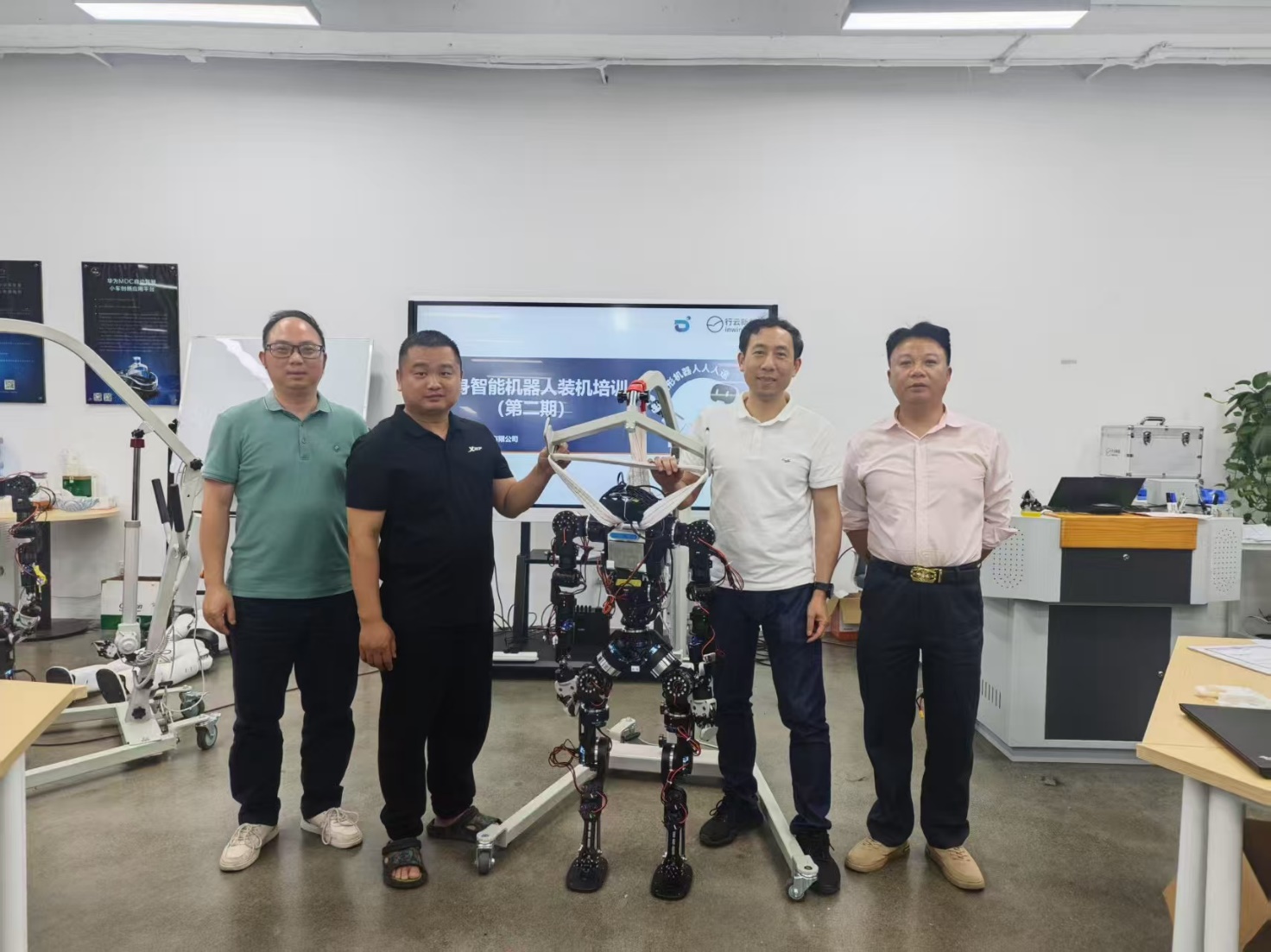 2025年4月11日至13日,beat365派出电气自动化、工业机器人等领域的四位优秀教师——李国育、李纪聪、梁文华、侯振洪,前往深圳参加了由行云新能科技(深圳)有限公司主办的具身智能机器人装机培训。此次培训旨在提升教师在智能机器人领域的专业技能,促进教学与产业的深度融合。