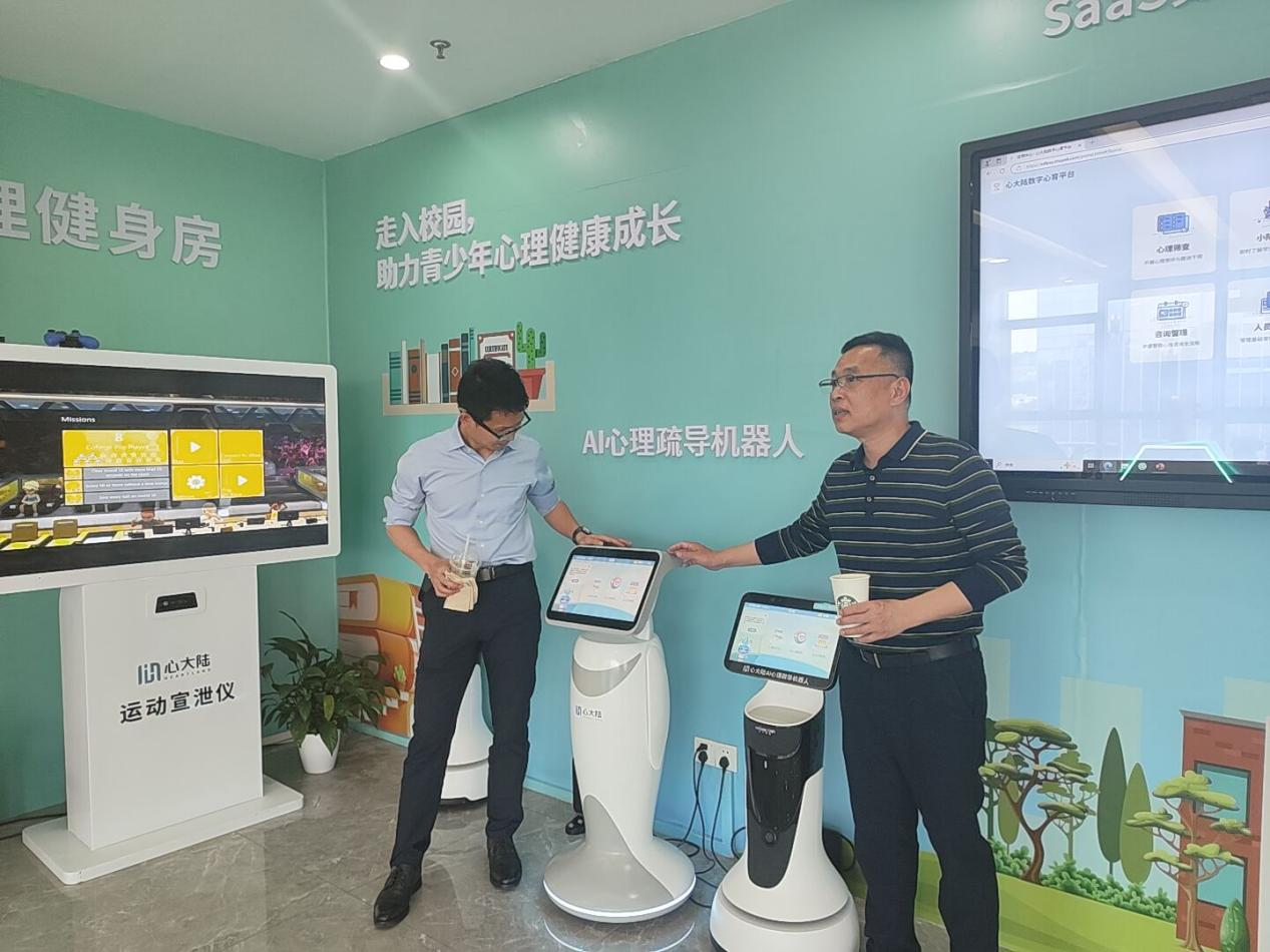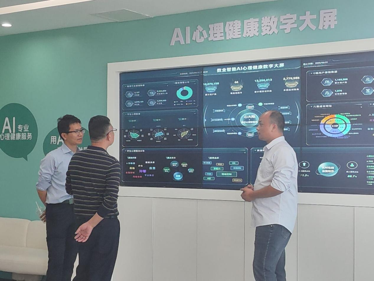 结束在广东省电子商务技师学院的交流后,交流团一行马不停蹄地前往广东数业智能科技有限公司考察。公司林开岳总监热情接待,并介绍了公司的经营理念以及业务范围。随后,林总监陪同交流团参观了公司的产品展区,重点介绍了公司自主开发的AI心理疏导机器人和系统。先进的技术和创新的产品给交流团留下了深刻印象,也为华商科教集团在相关领域的发展提供了新思路和合作方向。