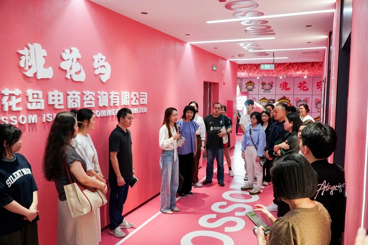 接着,团队一行来到了创科楼,参观了华商“桃花岛”电商直播基地。步入基地,先进完备的设备令人眼前一亮,专业的灯光、高清的摄像设备、功能强大的导播台等设施,尽显现代化“电商直播”专业水准。香港师生现场观摩了直播带货演示,参观了不同主题的直播间。这种将电商与职业教育深度融合的创新人才培养模式,让香港师生惊叹不已。在酒店及旅游行业加速数字化转型的当下,电商直播已成为关键的营销利器。香港师生纷纷表示,这一模式极具创新性和前瞻性,回去后将积极借鉴并应用于教学实践。