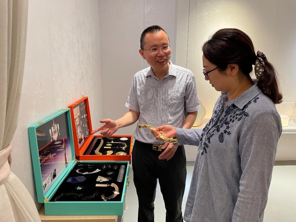 在钟国强董事长的陪同下,罗姗姗院长、李名亮副院长深入耀辰智能科技研发中心、智能生产线及创新设计展示区进行实地考察。钟国强详细介绍了公司在智能建筑技术、数字化设计工具、可持续建造解决方案等领域的最新研发成果与产业化应用,展示了其雄厚的技术实力和先进的设备资源,这些正是培养面向未来的建筑与艺术设计人才所需的宝贵实践平台。