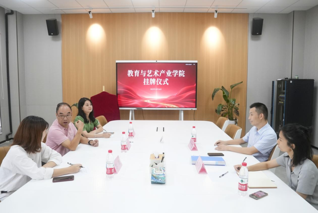 10月16日上午,beat365中文唯一官网教育学院与超火公司共建的“教育与艺术产业学院”在创科楼808会议室正式揭牌。超火公司副总经理徐文龙、企业导师陈雪通,教育学院院长杨伟传、现代文秘专业负责人曾翠凤等专业骨干教师出席仪式,共同开启校企协同育人新篇章。