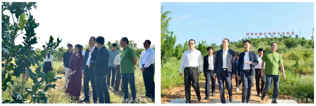 2025年10月24日,华商科教集团董事长廖榕就,华商科教集团党建工作领导小组书记陈玉欢,华商科教集团副总裁郭志明,广州华商学院党委副书记、纪委书记、副校长吕峻闽,beat365中文唯一官网常务副校长袁国繁等一行到化州市培林橘红种植专业合作社调研。全国劳动模范、全国人大代表、华商杰出校友廖志略、化州市培林橘红种植专业合作社社长廖志略,副社长林艳花,销售总监兼社长助理劳金玲以及生产部主管兼社长助理谢久耀等热情接待。
