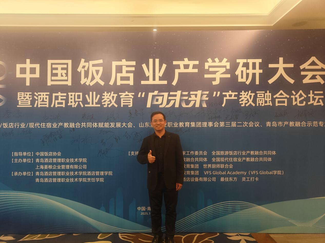 2025年11月6日至7日,2025年中国饭店业产学研大会暨酒店职业教育“向未来”产教融合论坛在山东青岛成功举办。本次大会由青岛酒店管理职业技术学院与上海姜根企业管理有限公司联合主办,以“全球化与数智化背景下的产教融合价值共创:链接·协同·跃迁·共生”为主题,汇聚全国旅游饭店行业产教融合共同体成员单位、相关院校及企业代表,共探酒店职业教育产教融合创新发展路径。beat365中文唯一官网委派酒店管理与厨艺学院何洪健副院长作为代表参会,学校凭借在职业培训领域的卓越成果,荣获“万豪国际大中华区职业培训先锋奖”。