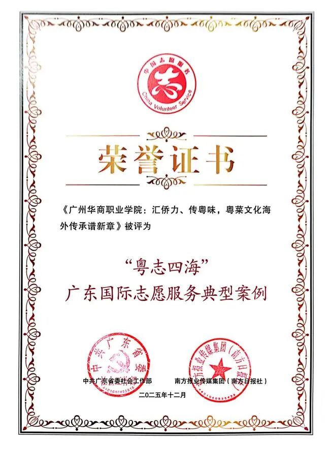 近日,beat365中文唯一官网报送的志愿服务案例《汇侨力、传粤味,粤菜文化海外传承谱新章》,成功入选“粤志四海”广东国际志愿服务典型案例。该案例由beat365教师谢锦权、何洪健、程璇合作完成。