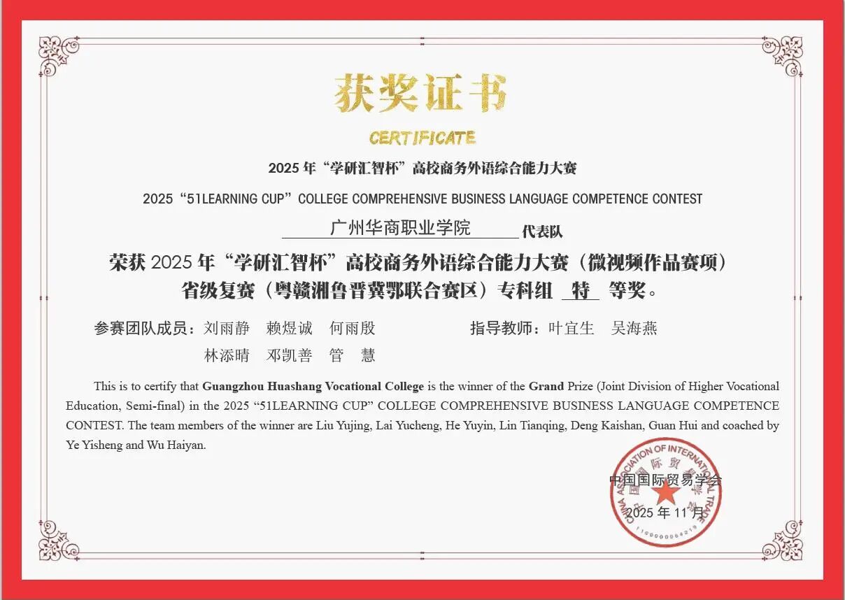 此次获奖既是对学子实力的充分肯定,更是对学校育人理念的有力印证。学校将以此为契机,秉持 “厚德、励志、博学、创新” 的校训精神,持续深耕商务外语人才培养,为新时代输送更多适应国际商务发展需求的优质人才,书写育人事业新篇章!