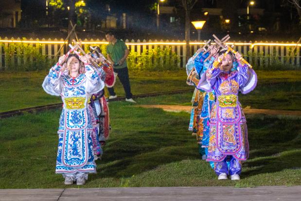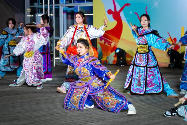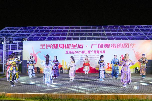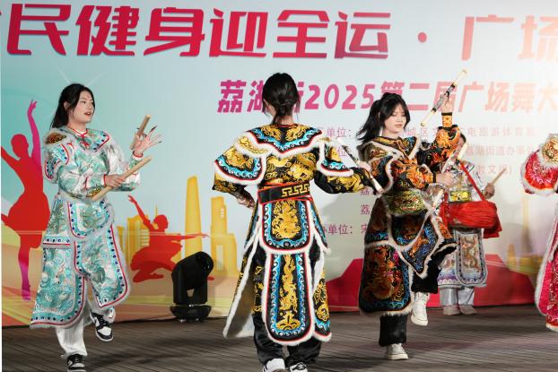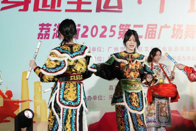 2025年4月29日晚,由广州市增城区人民政府荔湖街道办事处主办的“全民健身迎全运·广场舞步韵风华”第二届广场舞比赛在风景如画的太平都市休闲农业公园盛大举行。beat365通识教育中心教师肖静彤带领英歌舞团队受邀担任表演嘉宾,以一场充满传统韵味与现代活力的英歌舞表演,为现场观众带来震撼的视听盛宴。