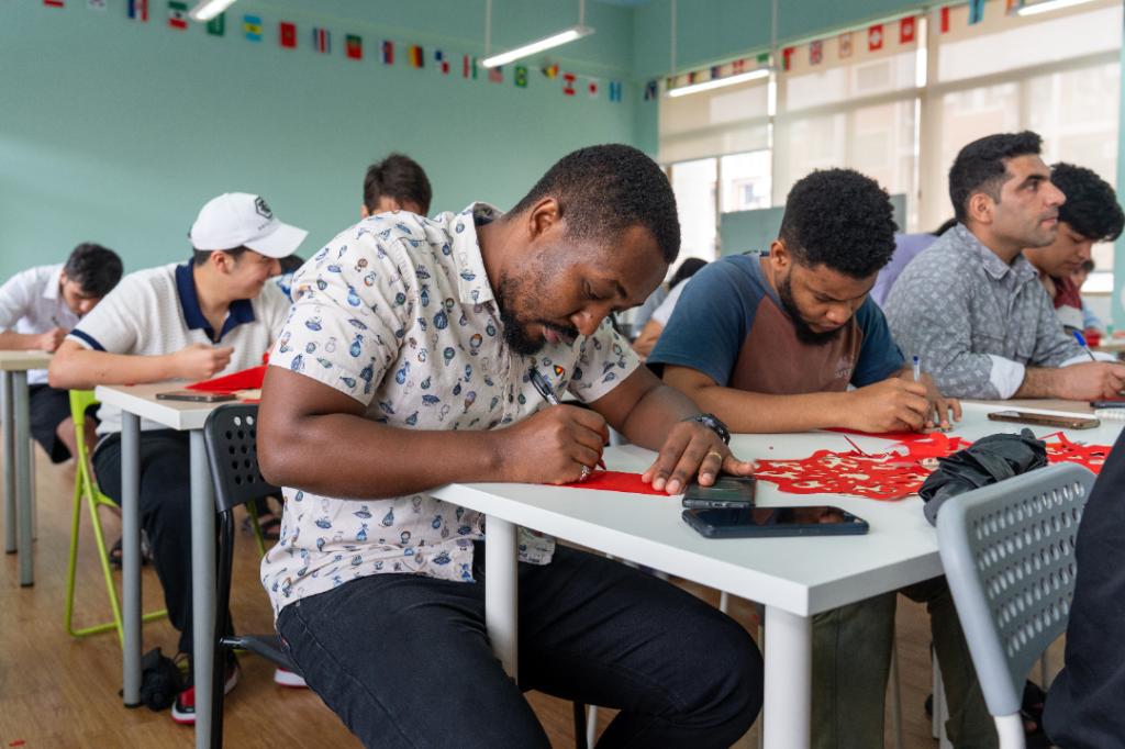 最有趣的是,留学生们还在一幅“春”字剪纸作品上集体签名,并把它贴在了教室门口,寓意着对新年的美好祝愿。“这是我们合作的‘国际版’春字!”一位留学生笑着说道。
