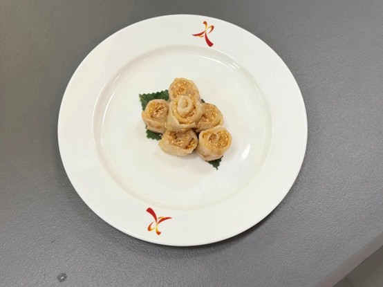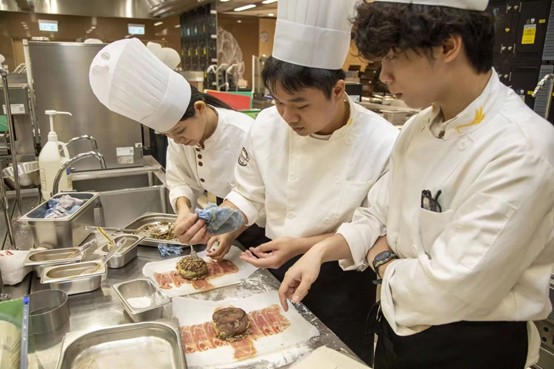 成果展示环节,两地师生共同呈现了8道融合作品,其中既有遵循古法、散发艾草清香的茶果,也有将威灵顿牛排与豉油皇乳鸽巧妙结合的创意拼盘,充分展现了学习成果。
