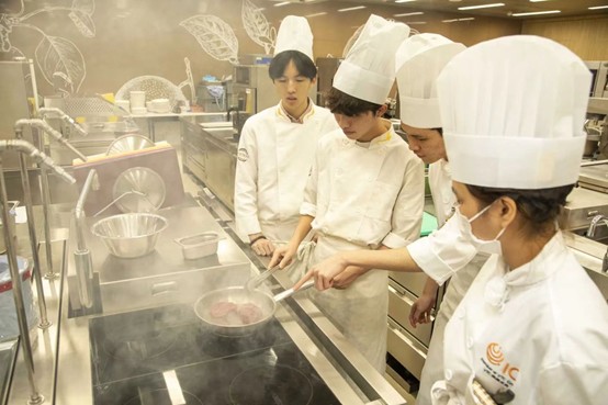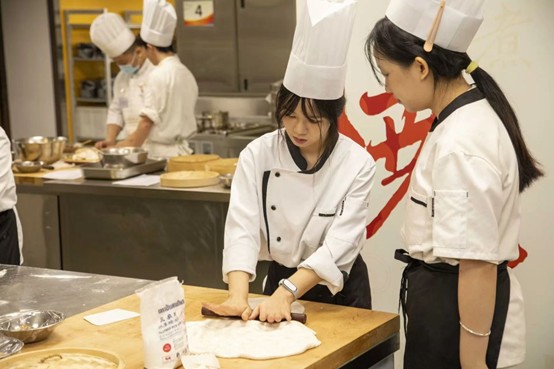 师生们身着专业厨师服,在香港中华厨艺学院导师的悉心指导下,沉浸于港式烹饪技艺的学习。学员们精准把控着威灵顿牛排酥皮的烘烤火候,反复调试甜薄撑的糯米粉水配比,系统学习乳鸽“三浸三吊”的上色技法。其中,叉烧蜜汁的调配环节令学员们印象深刻,纷纷表示收获颇丰。