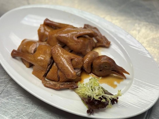3.粤式烧味:深入学习豉油皇乳鸽腌制、叉烧糖衣秘制、凉拌青瓜皮蛋三大核心模块