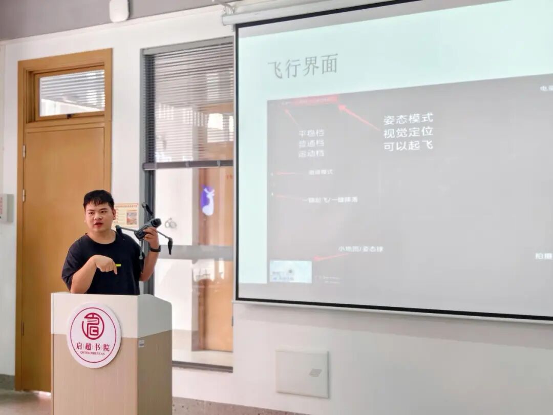 ▲ 陆俊杰在江门校区讲解无人机飞行理论知识现场