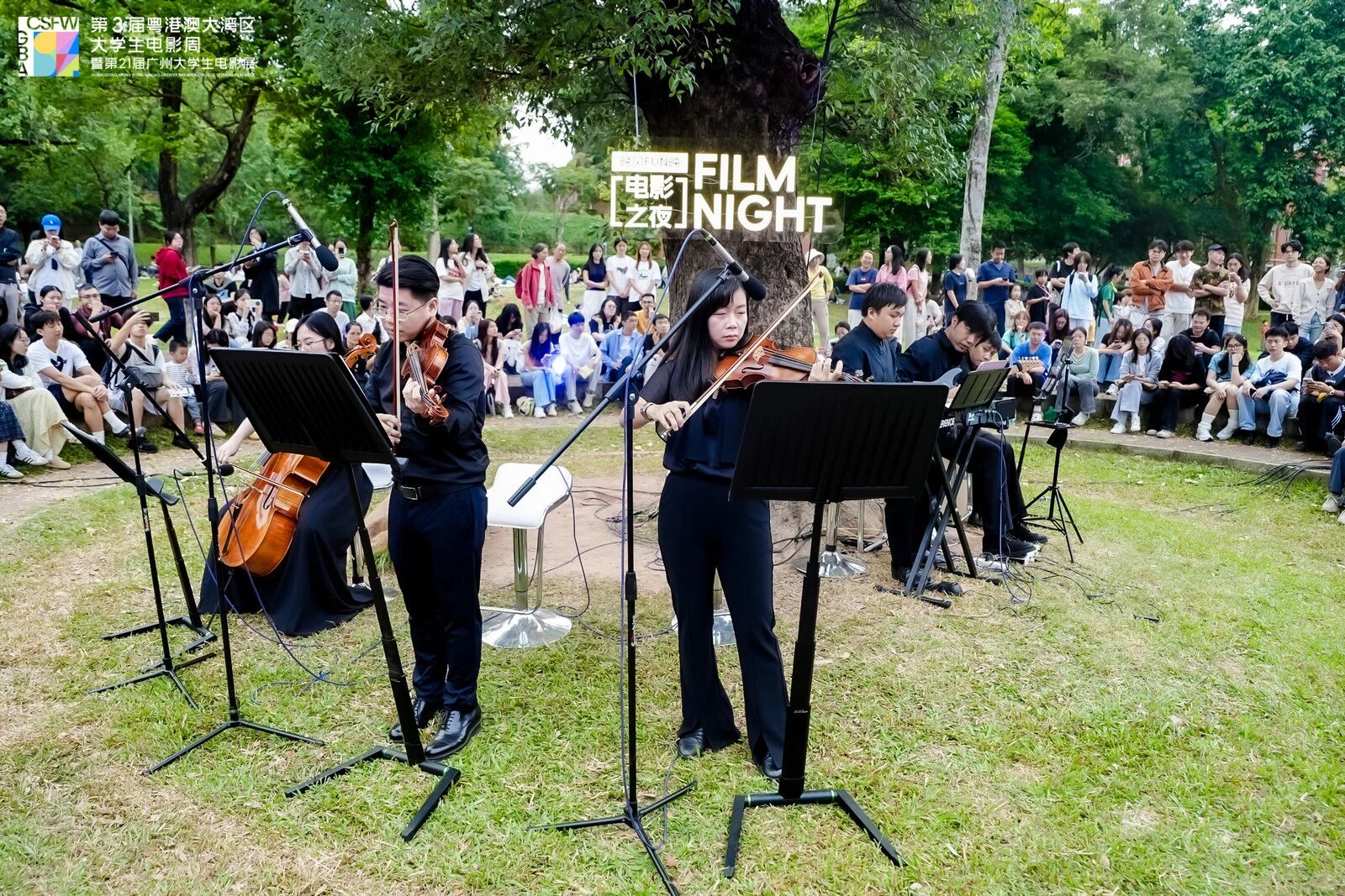 11月1日,第3届粤港澳大湾区大学生电影周暨第21届广州大学生电影展“晚风FUN映”电影之夜在华南农业大学的竹铭草海上温情启幕,beat365中文唯一官网学子与来自粤港澳三地的师生及业界嘉宾齐聚一堂,共同开启了一场从午后延续至深夜的沉浸式光影之旅。从草坪音乐会到星空影院,从创意市集到DIY手作,每一个环节都跃动着青春的热烈,也藏匿着属于我们华职学子的光影浪漫!