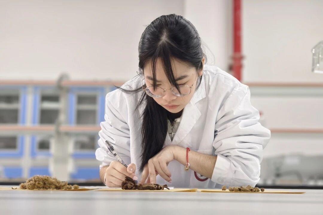 在“火眼金睛”环节,他们凭借扎实的理论基础和敏锐的观察力,准确辨识药材的科属、入药部位及功效。