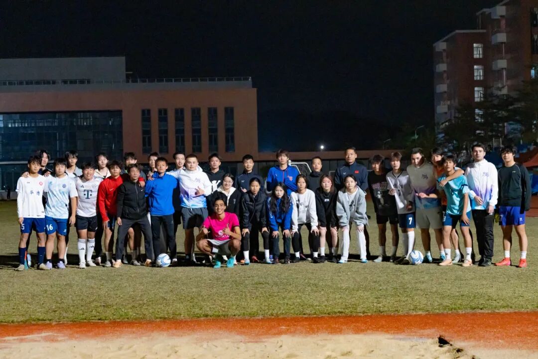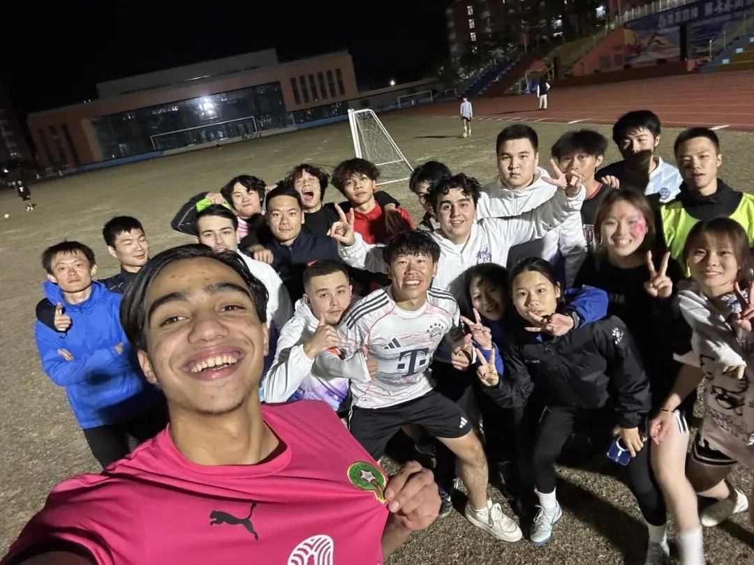 夜幕下,交流赛在欢声笑语中落下帷幕。中外师生们纷纷握手致意、合影留念,定格这段因足球结缘的美好时光。“以球会友、以球促学”的氛围在校园内持续升温。从初次见面时的拘谨,到赛后用中英双语畅聊的融洽,足球让中外师生打破语言壁垒,在运动中加深了解,更激发了彼此学习语言的兴趣。