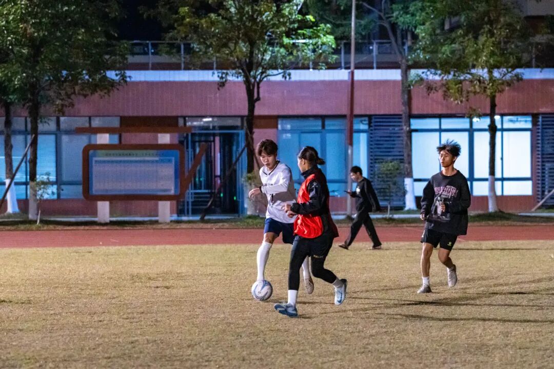 2025年度足球社团交流系列活动之中外师生交流赛在江门校区足球场顺利举行,学校男子足球队、女子足球队、留学生足球队及教职工足球队的30余名足球爱好者齐聚绿茵场。活动以分组轮番对阵的形式展开,师生在切磋球技的同时传递友谊,让赛场成为中外文化交流的桥梁,也让冬夜多了几分温度与活力。