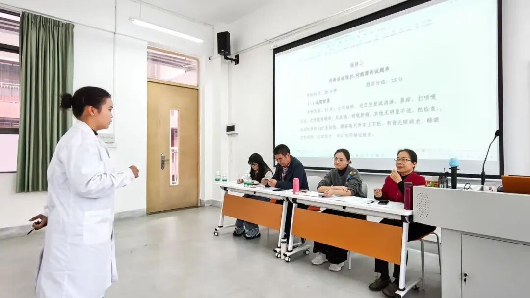 此外,药物技术学院还在11月下旬举办了首届药学技能竞赛。决赛共分为3个环节。在 “处方调剂与用药指导” 环节,选手需在20分钟内完成2张随机处方的审核,并针对处方合理性作出专业判断与指导。在 “用药咨询” 环节,选手须在规定时间内完成初步诊断、药物推荐与用药交代,并现场解答患者咨询,重点考核诊疗思维、荐药能力与服务沟通水平。在 “慢病管理” 环节,选手需基于病例资料,系统开展患者信息管理、用药指导与健康教育,全面体现药学服务的综合实践能力。经过激烈角逐,竞赛最终评选出个人综合一等奖3名、二等奖6名、三等奖9名、优秀奖5名。颁奖仪式于12月6日下午举行。