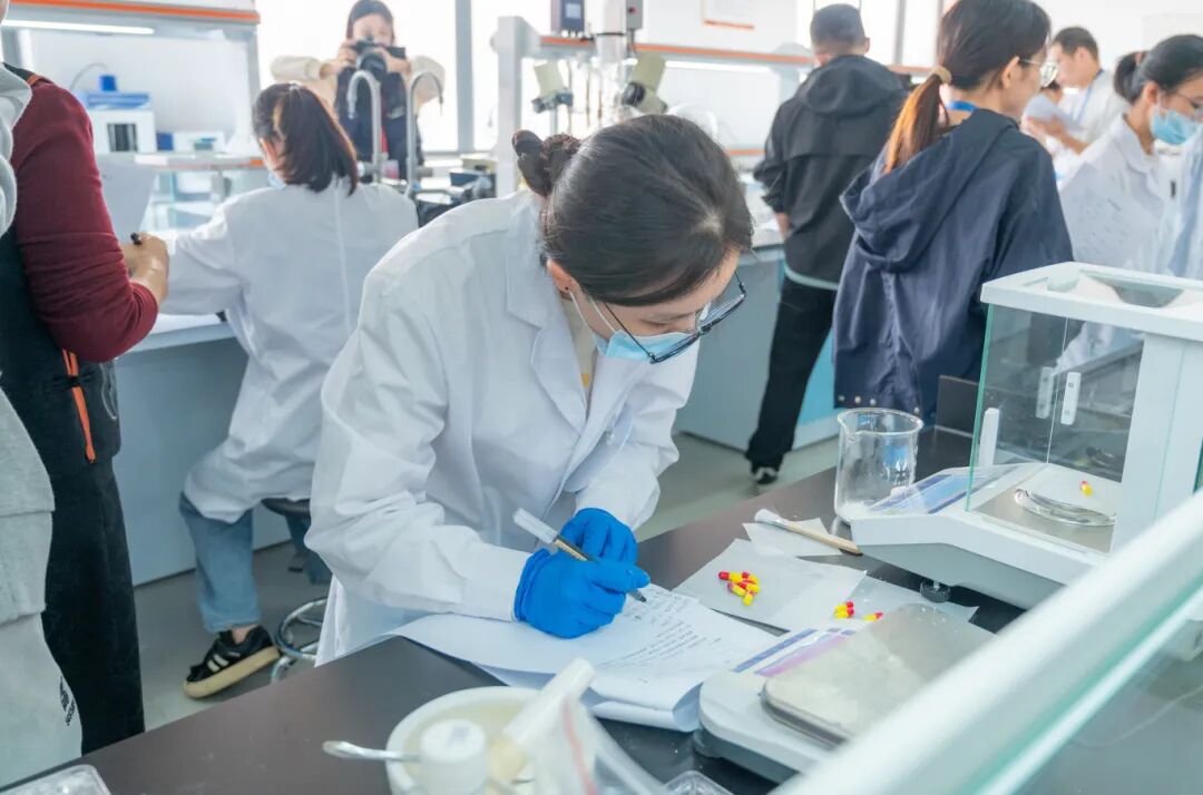 决赛以实操考核方式进行,紧密契合行业前沿需求,重点评估选手在硬胶囊剂生产全流程中的规范操作与质量把控能力。选手必须在40分钟内按顺序完成胶囊制备、质量检测及记录报告三项任务。赛场氛围紧张而有序,选手们沉着应对,在精确称量、药物填充、胶囊封合、质量检查等每一个环节都展现出扎实的专业技能与严谨的职业态度。经过激烈角逐,最终评选出一等奖1名、二等奖2名、三等奖3名及优秀奖6名。