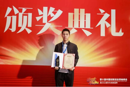图为蔡木城获第十届创新创业领袖峰会2022年度创新人物奖