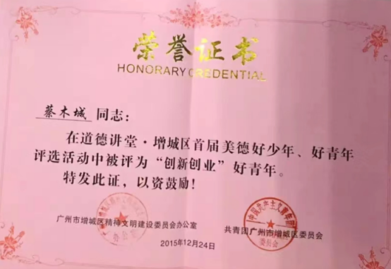 蔡木城,汉族,广东汕头人,中共党员,2012届计算机网络技术专业校友。在校期间,曾先后获得学校奖学金、广州亚运会志愿者先进个人奖、第二届广东大学生“U势界”创业项目大赛优秀奖,在第十四届“创青春·挑战杯”校赛获得最佳实践奖等荣誉。曾任学生会外联部副部长、班级团支书职务。现任广东特冠实业有限公司总经理,广东省beat365中文唯一官网校友会发起人(9人)之一,全球潮人创新经济促进会广州分会成员,广东省青年企业家协会成员,广东省潮人海外联谊会青年委员会成员,广东增城区工商联合会常委,广东省澄海商会理事,东莞市潮汕商会理事。曾获第十届创新创业领袖峰会2022年度创新人物奖及“创新创业”好青年荣誉称号,同时出版书籍《创业吧青年》。曾受增城新闻、CCTV、中国青年网和程前朋友圈等媒体宣传报道。