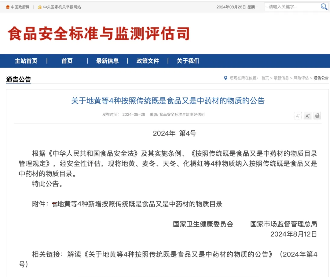 廖志略表示,化橘红药食同源申报成功,不仅有助于保留和传承乡村的特色文化,增强乡村的文化底蕴和吸引力,更能促进化橘红产业升级和地方经济发展,带动相关种植、加工、销售等环节的发展,为乡村创造更多的就业机会和经济收入,让农民对自身的传统文化产生自豪感和认同感,增强他们对乡村发展的积极性和投入度,助力乡村振兴高质量发展。念念不忘,必有回响。8月26日,食品安全标准与监测评估司发布相关文件,根据《中华人民共和国食品安全法》及其实施条例、《按照传统既是食品又是中药材的物质目录管理规定》,经安全性评估,将地黄、麦冬、天冬、化橘红等4种物质纳入按照传统既是食品又是中药材的物质目录。