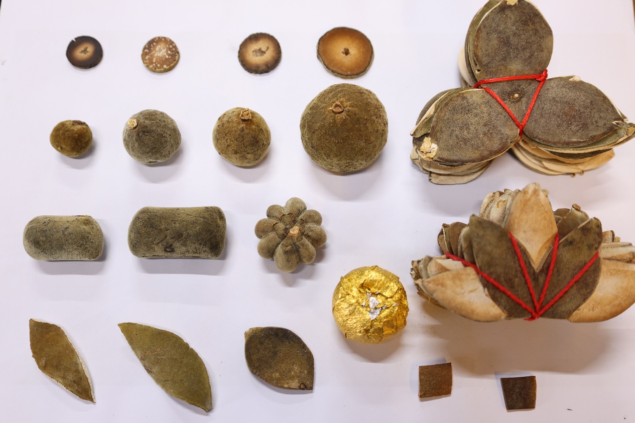 廖志略校友曾向学校赠送亲自监制的“七爪”形态的化橘红,详细介绍了化橘红产业,化橘红的制作工艺复杂而精细,药工将野橘柚的果实在沸水中略烫后,把果皮割成五或七瓣,除去果瓤和部分中果皮,压制成形,晾制干燥后即可使用。
