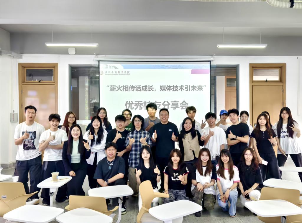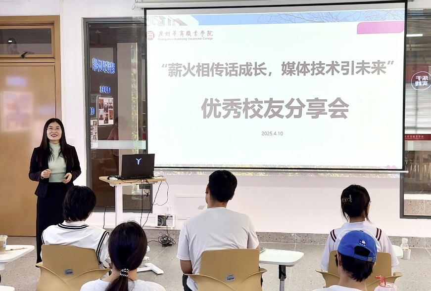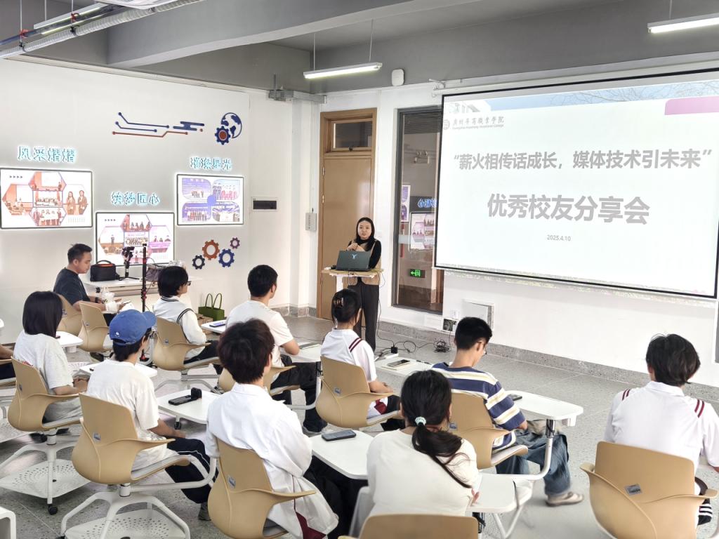 悠悠岁月歌,浓浓校友情。4月10日下午,学校特别邀请广州可乐影视传媒广告有限公司总经理、创始人岑展羽校友和戴禾臻校友重返母校在江门校区启超书院11D007以“薪火相传话成长,媒体技术引未来”为主题,通过创业经历分享、实战案例解析与互动答疑,为校内50余名新媒体骨干学子呈现了一场“干货满满”的分享会。活动由党委宣传部副部长梁杨清主持。
