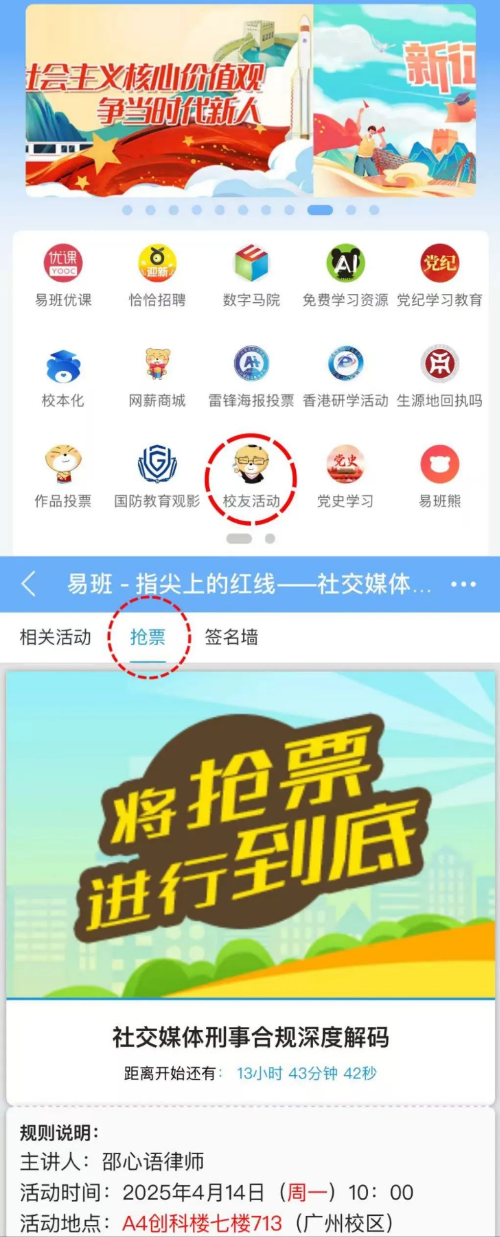 同学们可以登录“易班APP”
