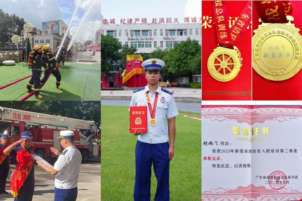 赖鹏飞,男,广东茂名人,2024届国际商务专业校友。2021年3月,他毅然选择参军入伍。2023年3月,他光荣退役。2023年9月,他考上广东省消防救援总队消防员,在广东省消防救援总队训练与战勤保障支队进行封闭式训练一年,2024年9月份下队。他曾获2023年新招录消防员入职培训“体能尖兵”;2024年被评为广东省消防救援总队新训团“新蓝尖兵”及“优秀新训队员”等称号。现任珠海(国家)高新技术产业开发区消防救援大队消防员。