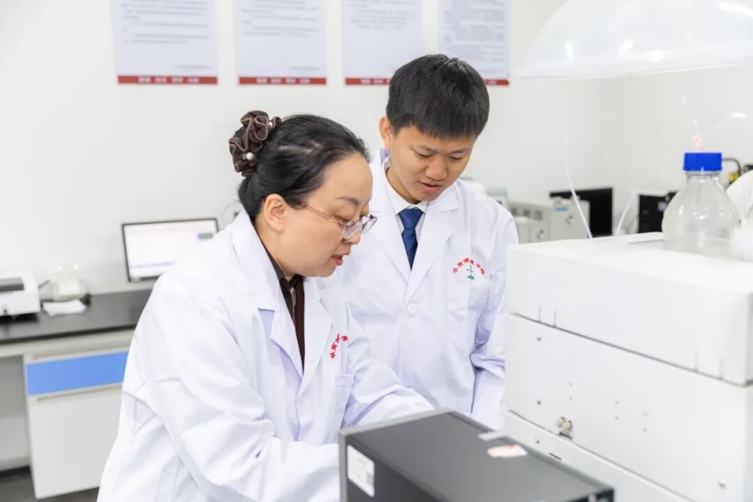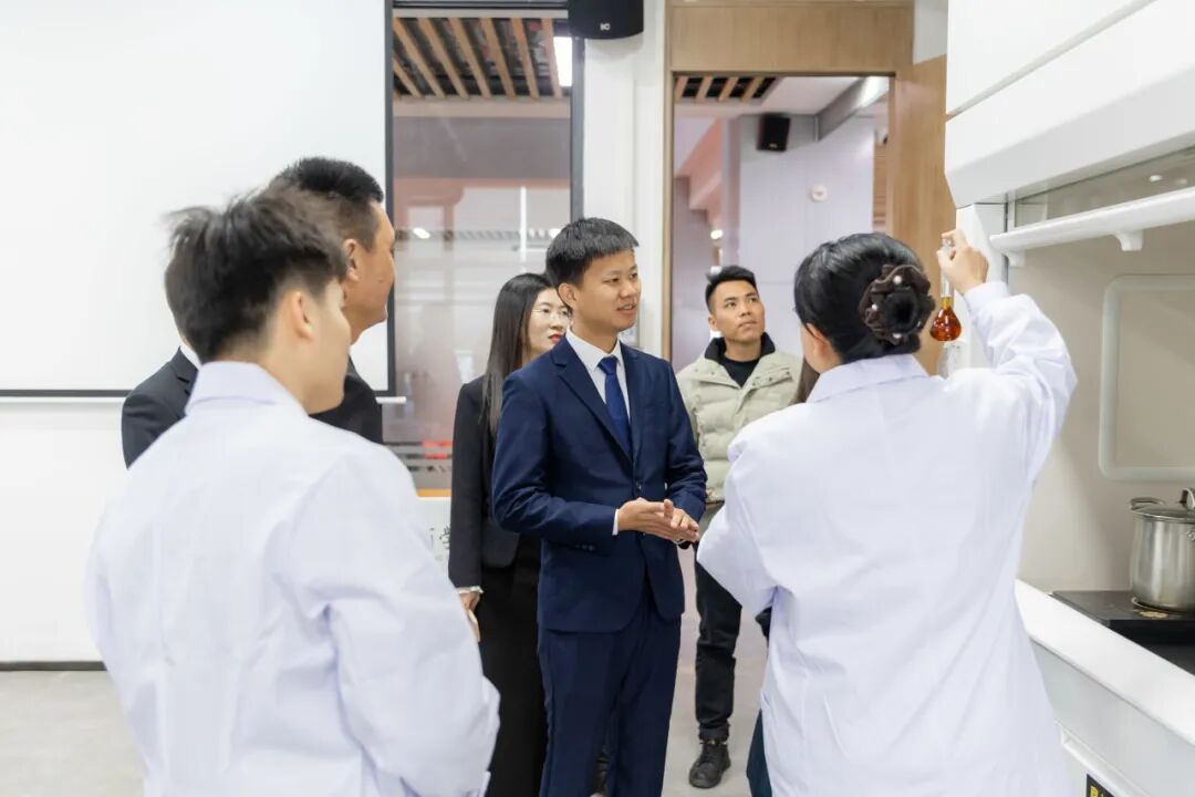 在参观院士楼中药制剂等实验室的过程中,白杨博士向廖志略校友详细介绍了学校在中药制剂、成分分析及产品研发等方面的科研平台与最新进展。廖志略校友结合自身在化橘红种植、加工与市场推广中的丰富经验,就产品工艺优化、质量标准控制等实际问题,与白杨博士展开了深入而具体的专业交流。期间,他还在科研人员的指导下,亲自尝试操作了部分实验设备,直观体验了学校在技术研发端的支撑能力。此次参观与交流,不仅让校友切身感受到母校扎实的科研实力,也为后续校企合作中技术攻关与成果转化的精准对接奠定了良好基础。